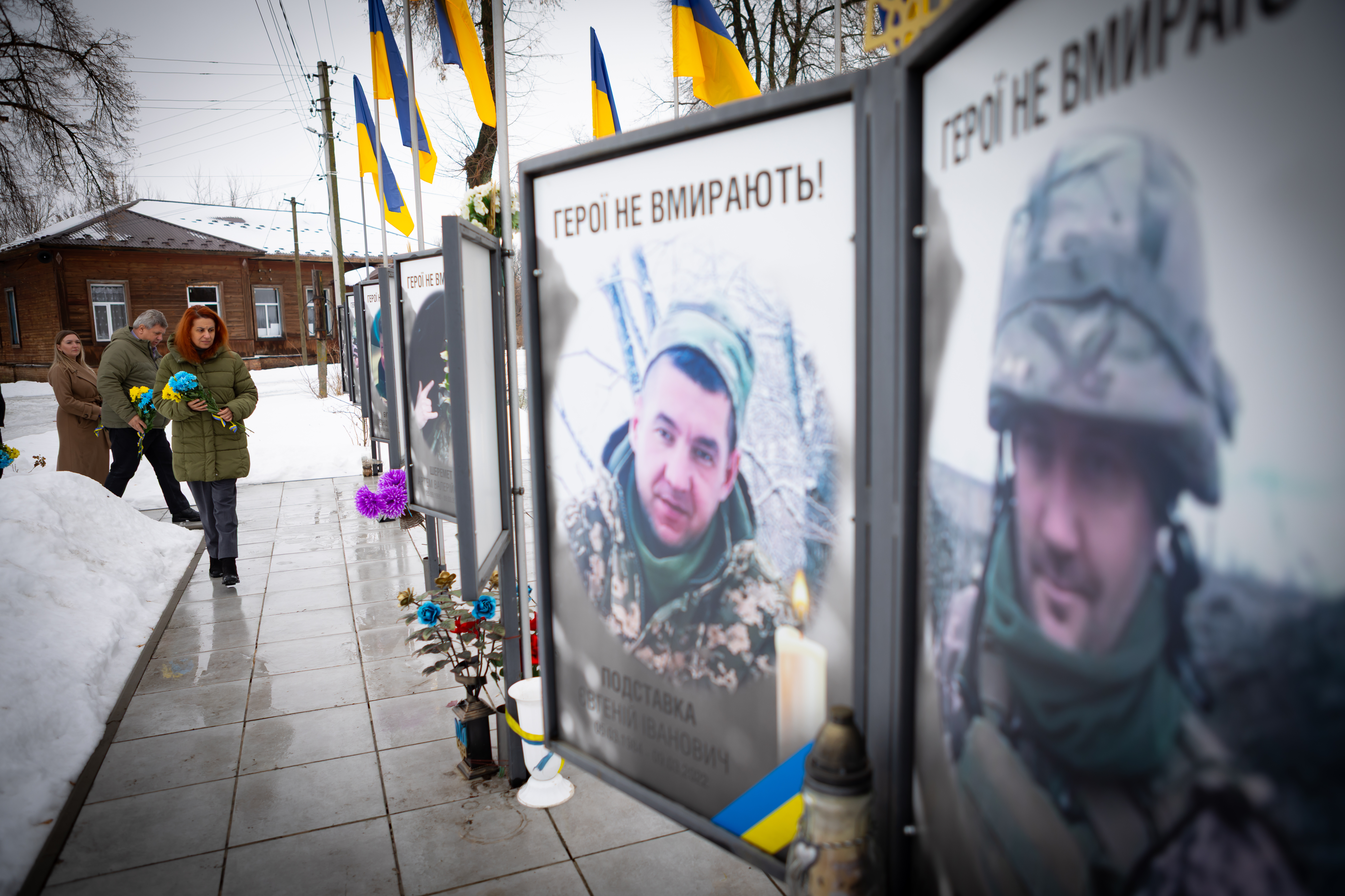 Пам'ятні заходи розпочалися біля Катерининської церкви. Наталія Калмикова разом із начальником Чернігівської ОВА В’ячеславом Чаусом, родинами полеглих та ветеранською спільнотою поклали квіти до пам'ятного знаку на честь воїнів, які загинули в російсько-українській війні.