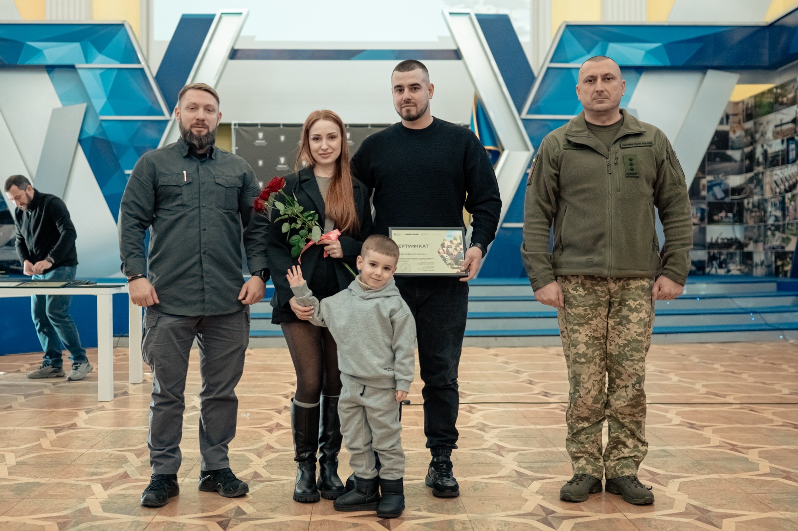 Сертифікати вручили заступник Міністра у справах ветеранів України, ветеран Руслан Приходько та перший заступник начальника Київської міської військової адміністрації, полковник Микола Швець.
