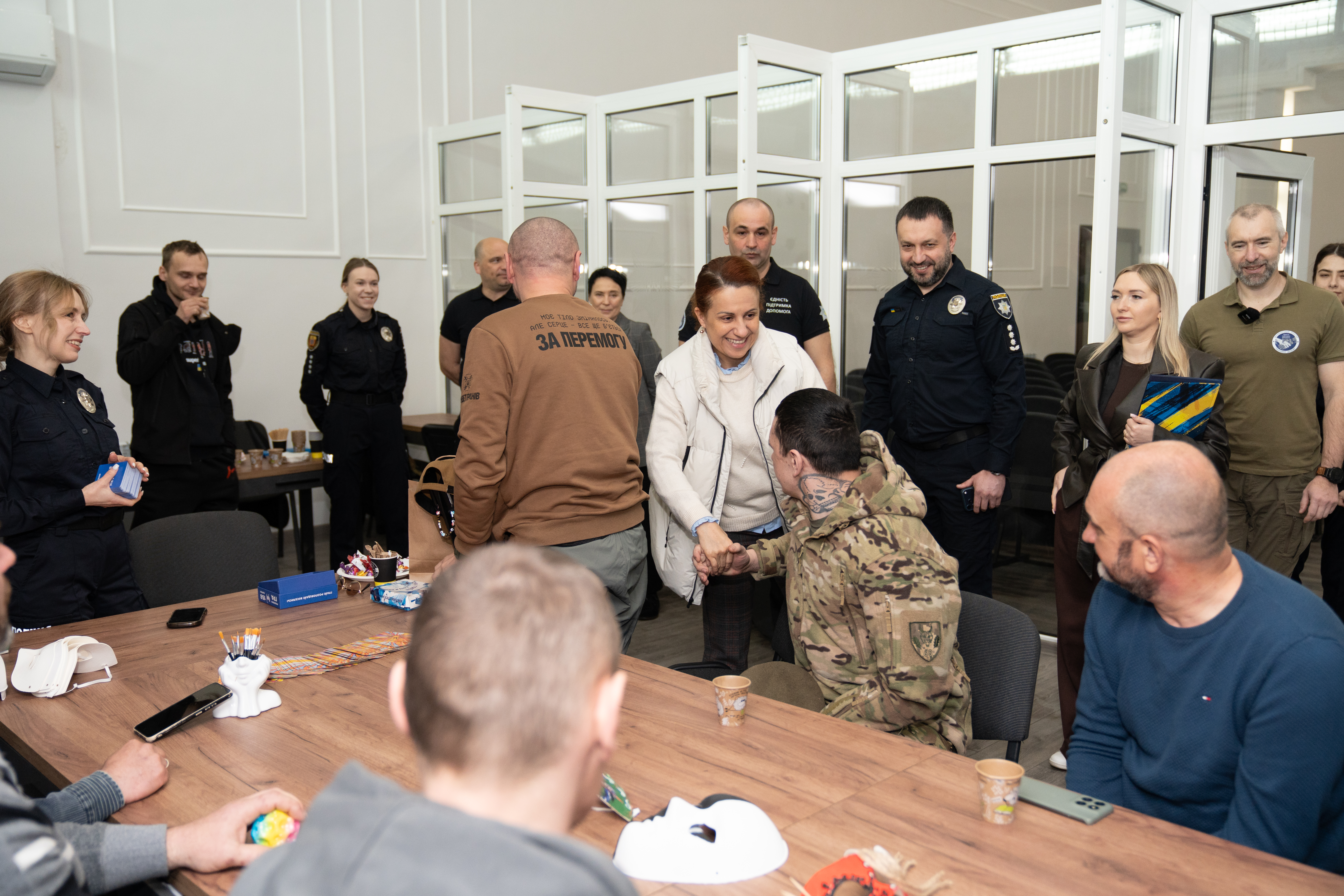 Також у Тернополі очільниця Міністерства ознайомилася з досвідом ГУНП в області, яке першим серед підрозділів поліції в Україні впровадило системну ветеранську політику. Створена при управлінні організація «Ветеранський простір «Незламні духом» об’єднує захисників із різних відомств для адаптації та підтримки за принципом «рівний-рівному».