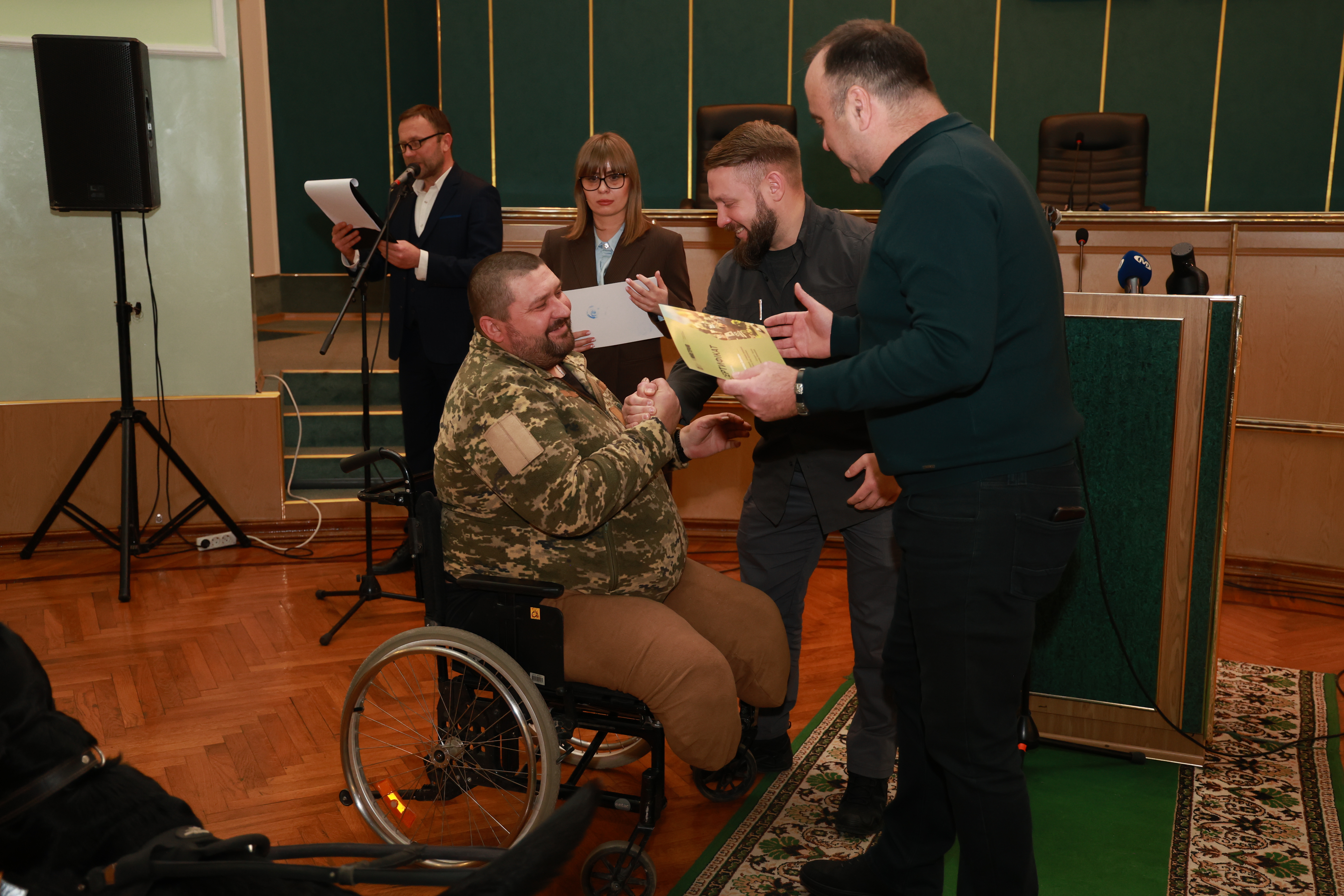 Руслан Приходько разом із заступником начальника Хмельницької обласної військової адміністрації Володимиром Юр’євим вручили сертифікати на придбання житла 29 ветеранам, а також 2 членам сімей загиблих Захисників і Захисниць України.